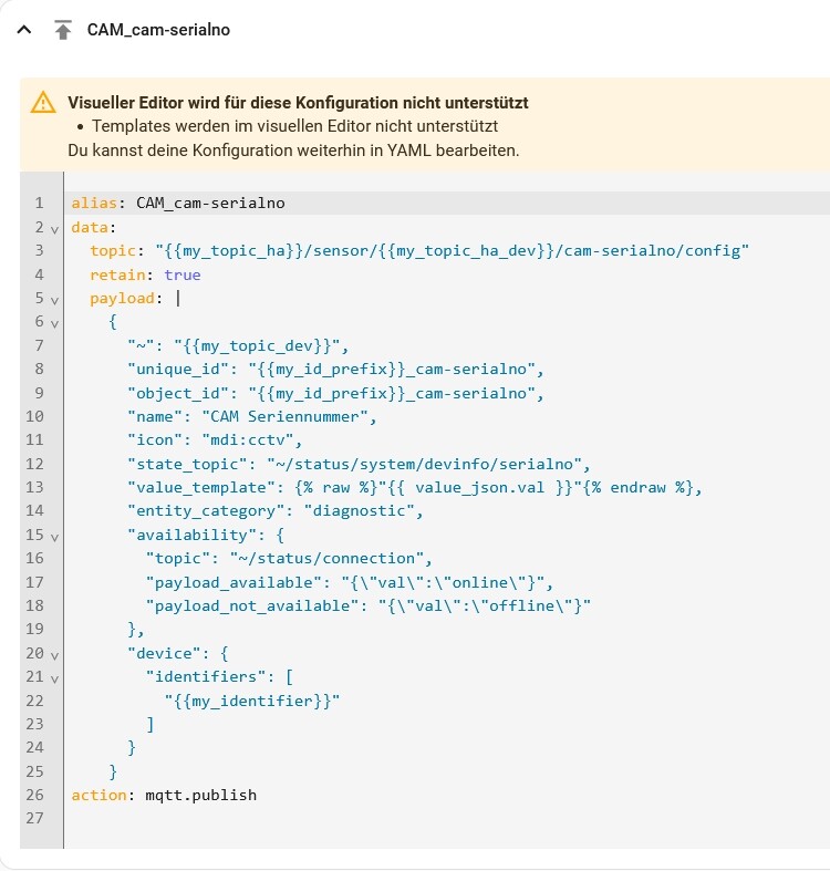 Es ist bereits vorbereitet, dass das Home Assistant MQTT Auto-Discovery unterstützt wird. D.h. man braucht dann nur noch die Kamera mit dem MQTT Broker verbinden und es wird einem sofort ein neues, voll durchkonfiguriertes, Gerät im HA Admin Panel angezeigt.